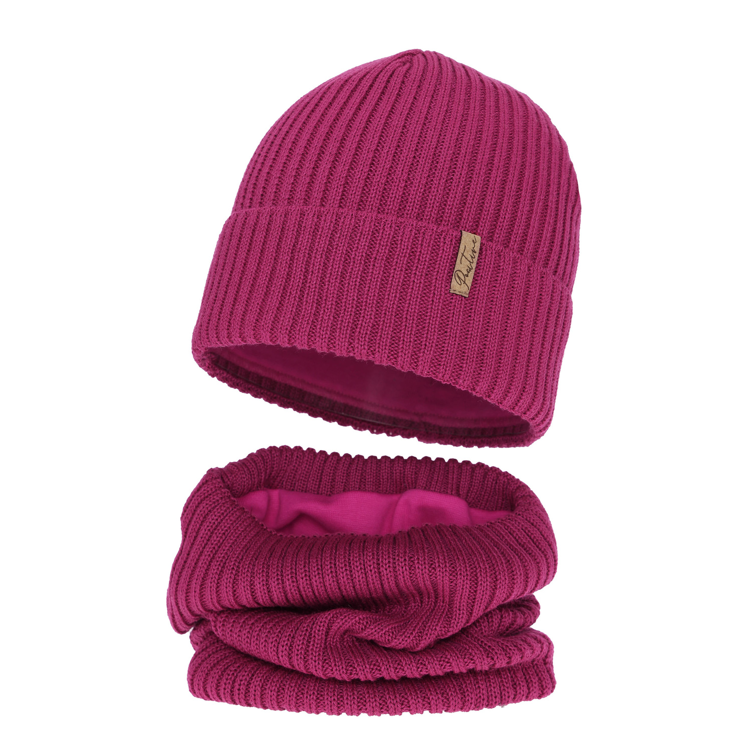 Set de iarnă pentru fete: căciulă și fular circular căptușit cu polar, amarant, cu lână merino, Odette