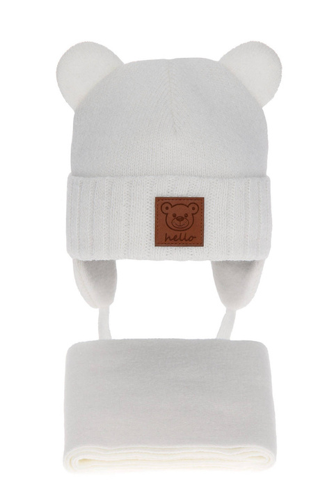 Set de iarnă pentru fete: căciulă și fular circular camel cu 2 pompoane Telisa